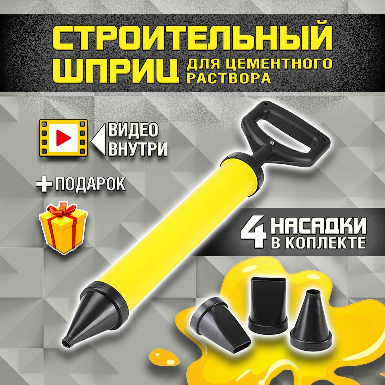 Строительный шприц пистолет для цементного раствора с 4-мя насадками информация: