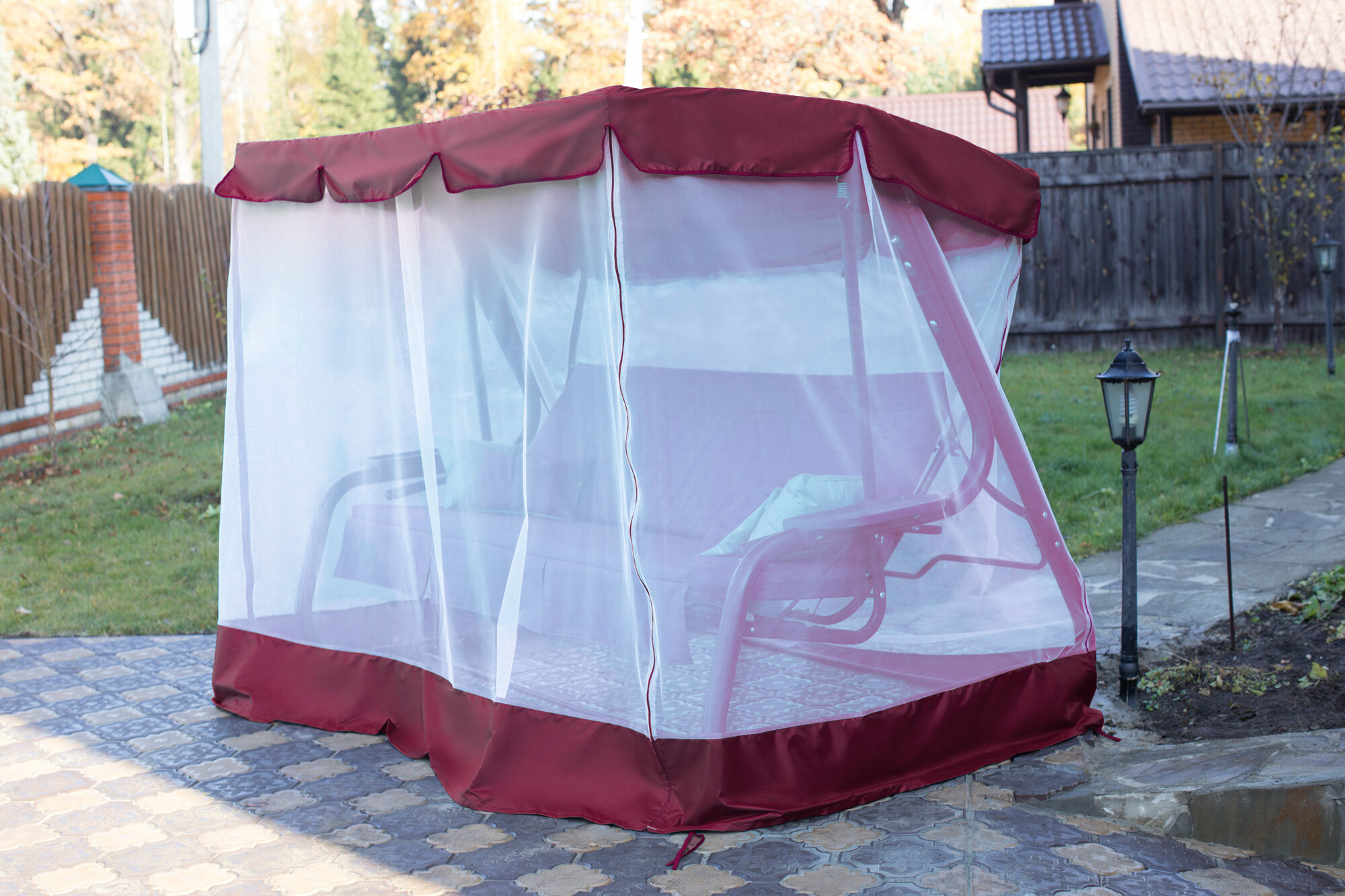 Отзывы на Тент с сеткой для качелей Палермо премиум (240х144х180 см) бордовый