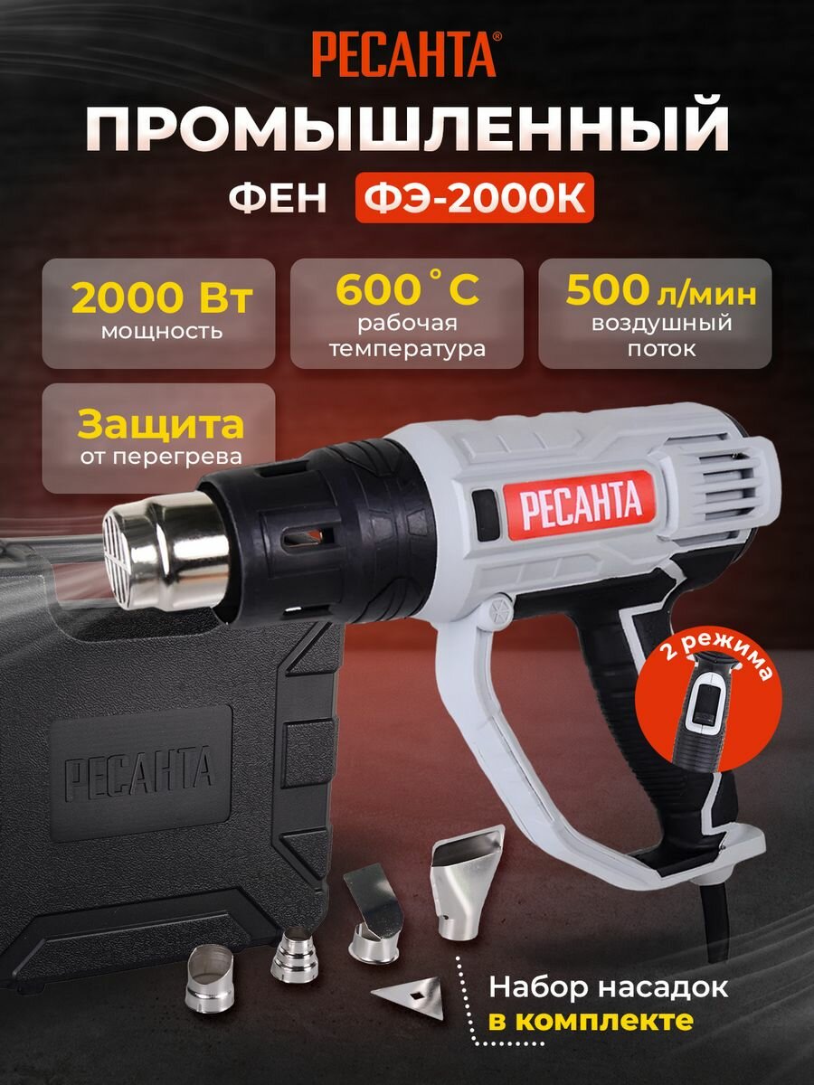 10 цен на Промышленный фен сетевой ФЭ-2000К, 4 насадки
