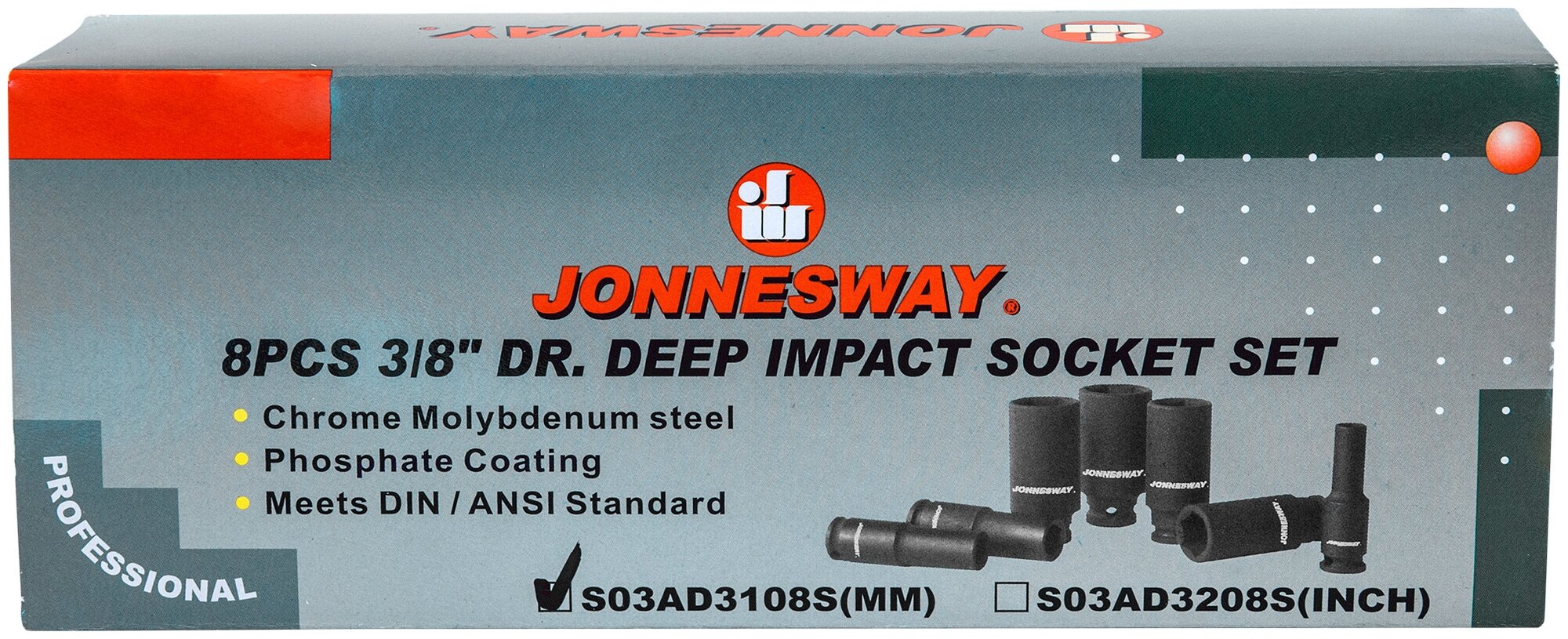 JONNESWAY S03AD3108S S03AD3108S_набор головок! торцевых ударных глубоких 3/8'DR, 10-19 мм, 8 предметов\