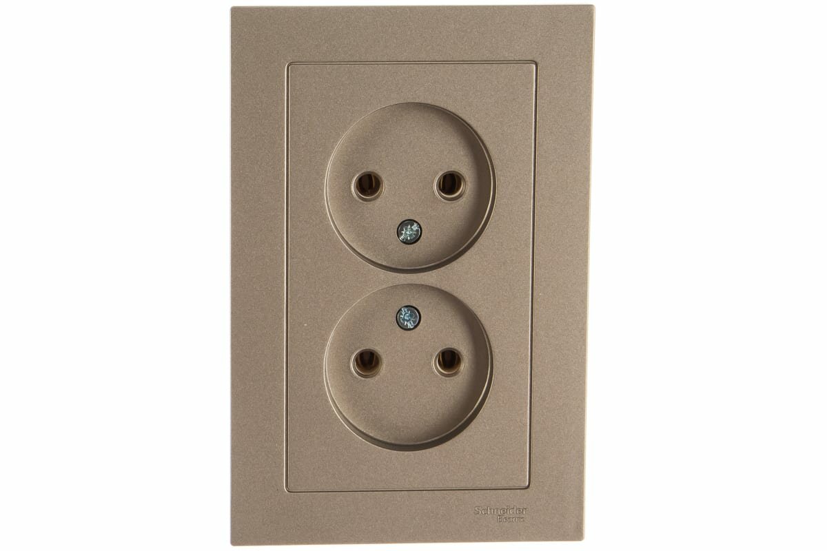 Розетка электрическая двухместная Systeme Electric Atlas Design без заземления в сборе 16А, Шампань ATN000520 - 10 шт. 7 715 ₽