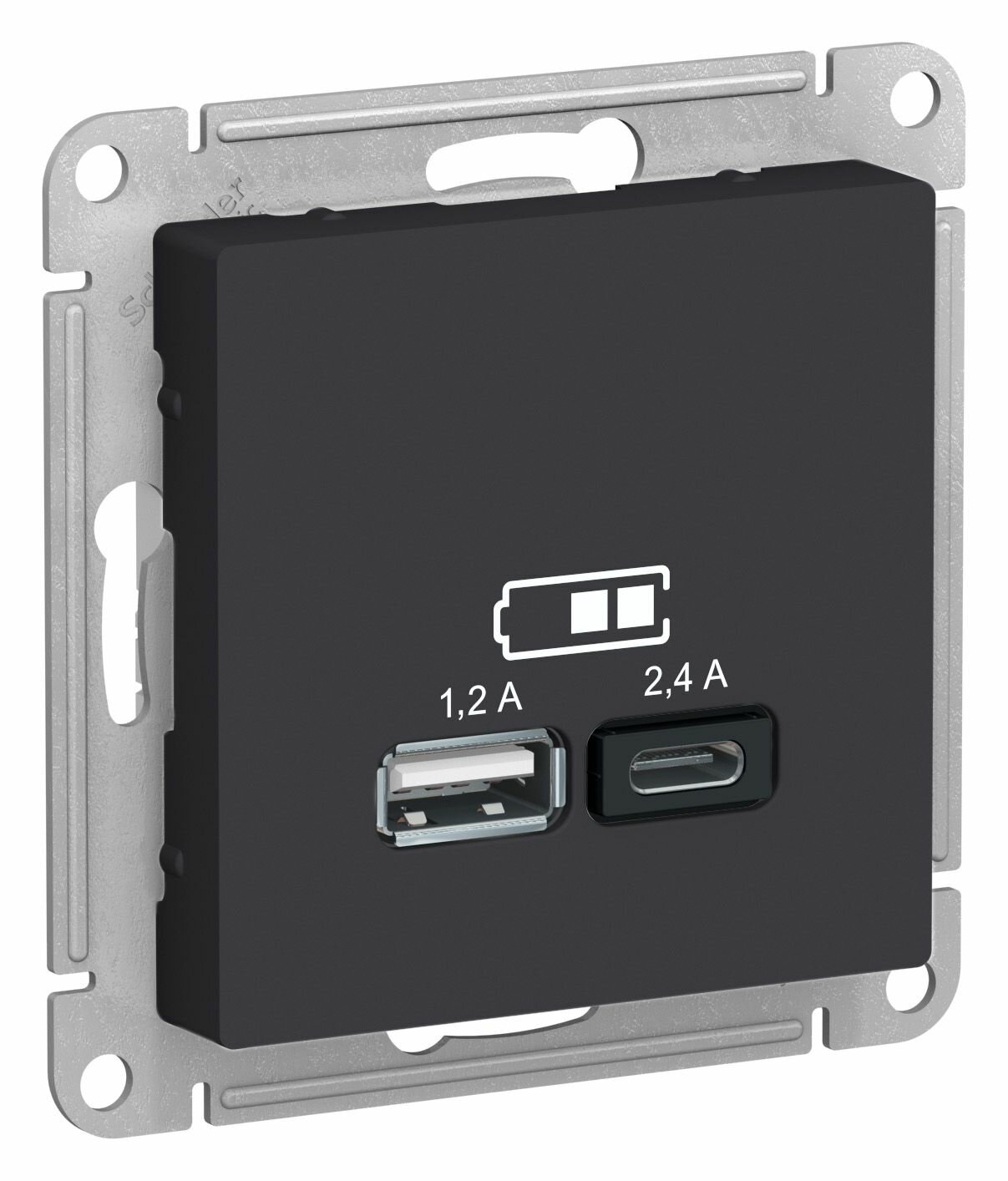 Розетка USB ATLASDESIGN A+С, 5В/2,4А, 2х5В/1,2 А, механизм, карбон () SCHNEIDER ELECTRIC ATN001039 (1 шт.)