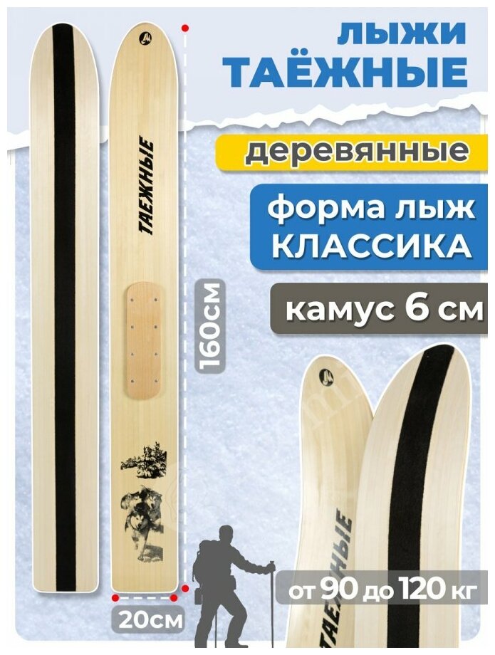 Охотничьи лыжи Маяк таежные 160х20 см с камусом 6 см, дерево + деревянные накладки / Промысловые для охоты, рыбалки, туризма информация: