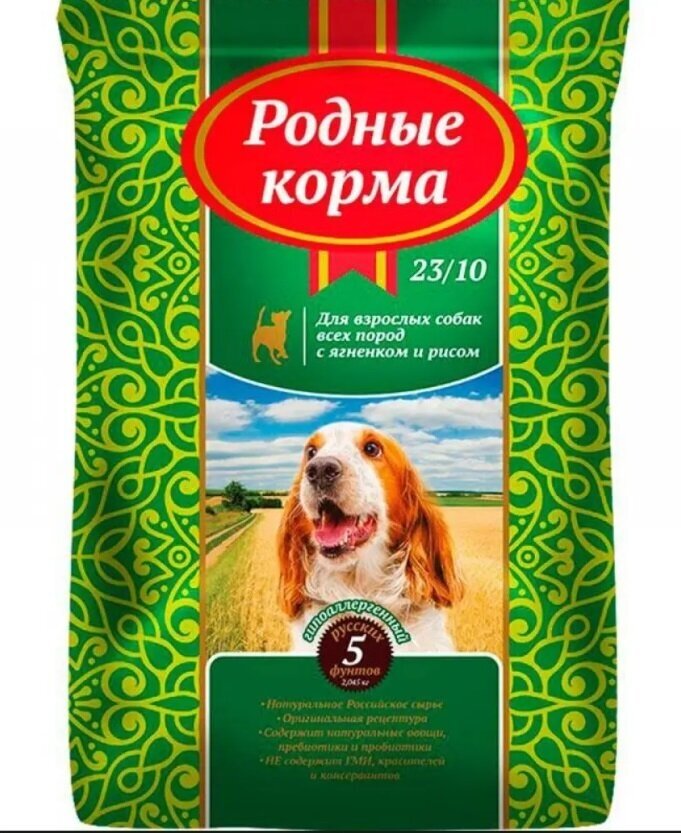 Cухой корм для взрослых собак ягненок с рисом, родные корма 23/10 5 русских фунтов 2,045 кг 1 169 ₽