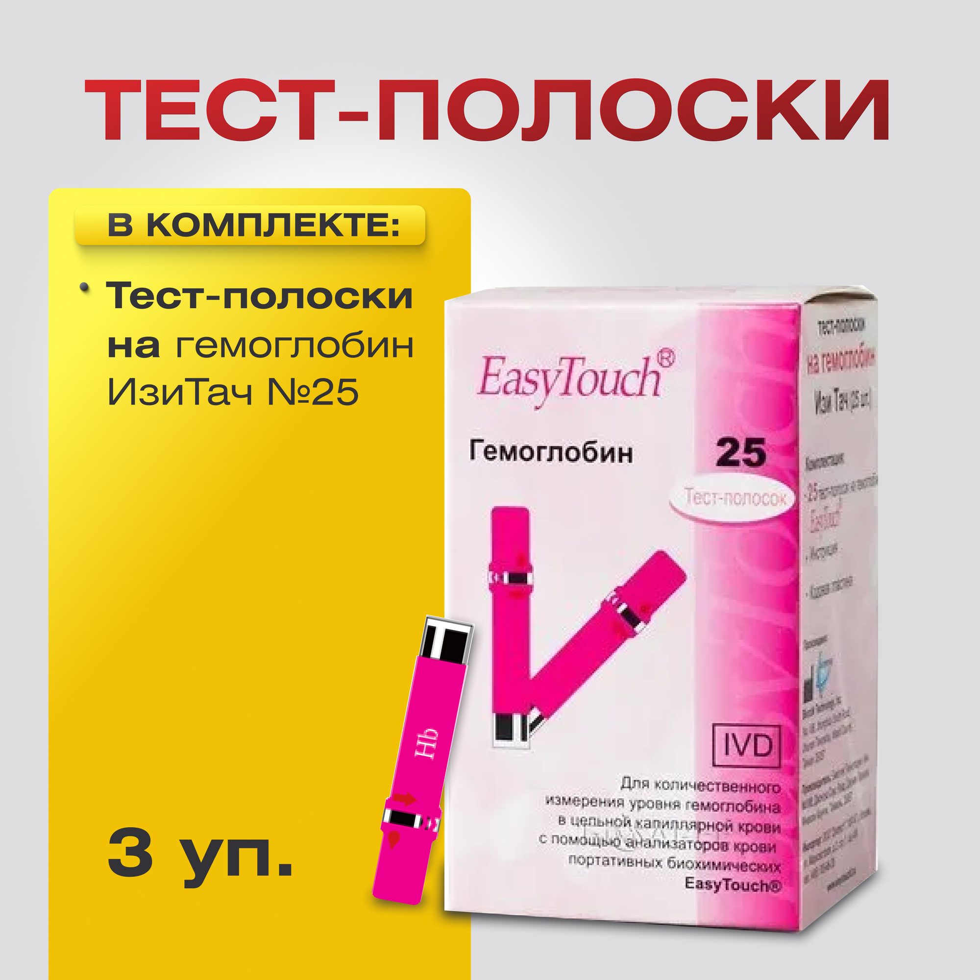 Тест-полоски на гемоглобин ИзиТач №25,3 уп. информация: