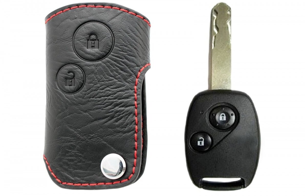 10 цен на Чехол для ключа Honda (Брелок), Кожаный, Цвет нити: Красный