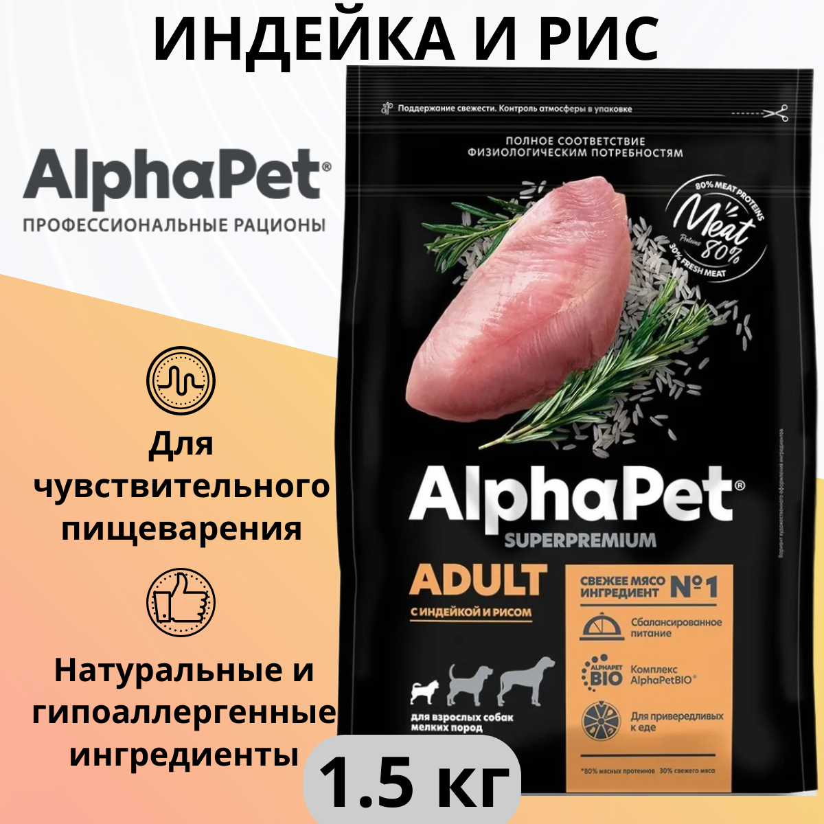 Сухой корм ALPHAPET 1,5кг для собак мини пород с индейкой и рисом информация: