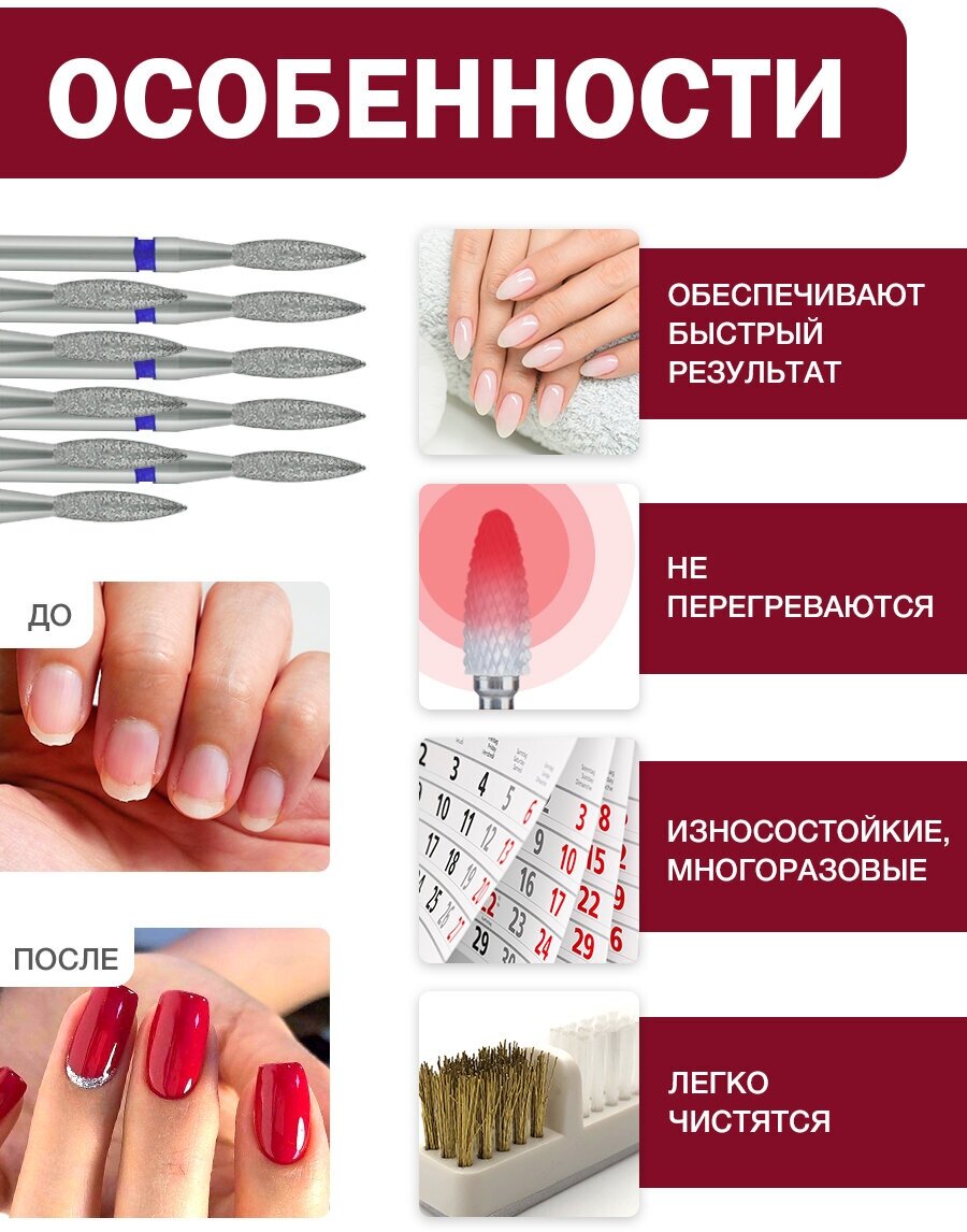 Отзывы на Фрезы алмазные для маникюра и педикюра пламя 10 шт 2,3 мм набор для профессионального маникюрного аппарата, дизайна, полировки ногтей, кожи и кутикулы