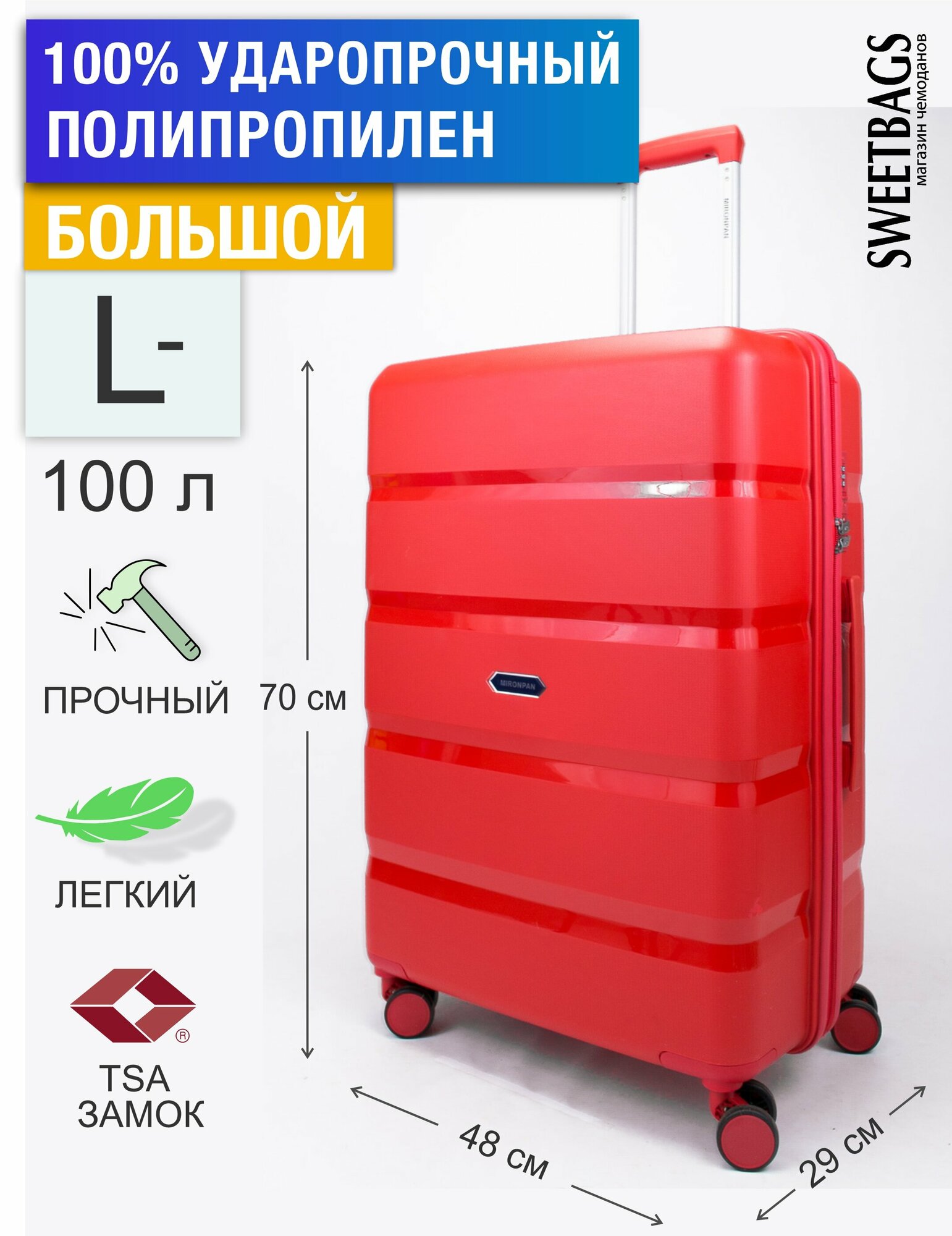 10 цен на Чемодан Sweetbags большой из полипропилена на 4-х колесах с TSA замком (4 гориз. полосы) красный L-