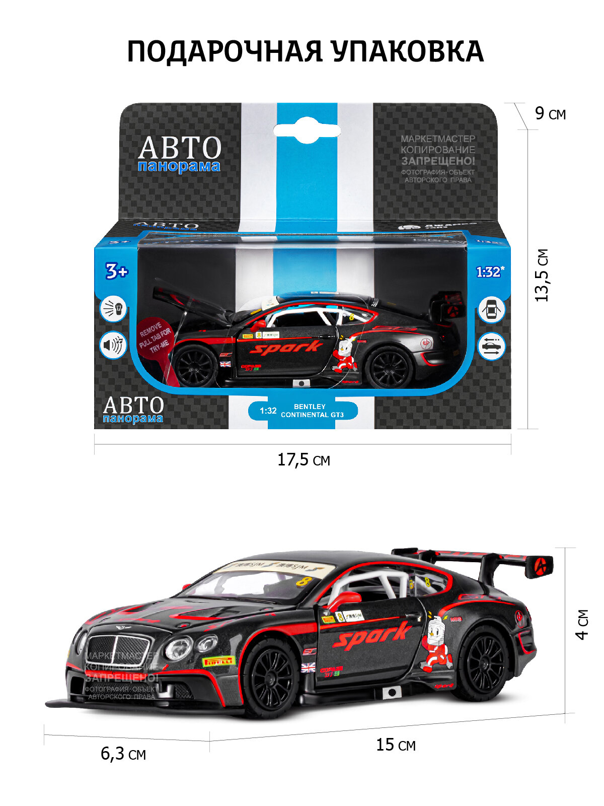 Отзывы на Машинка металлическая инерционная ТМ Автопанорама, Bentley Continental GT3, М1:32, свет, звук, JB1251407
