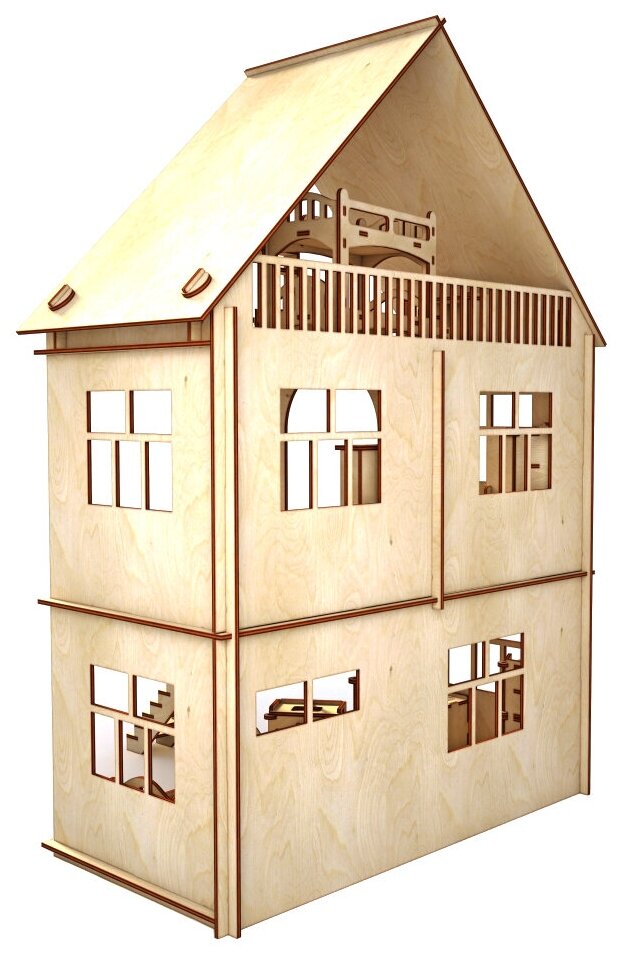 10 цен на Конструктор-кукольный домик ХэппиДом "Коттедж с мебелью" из дерева