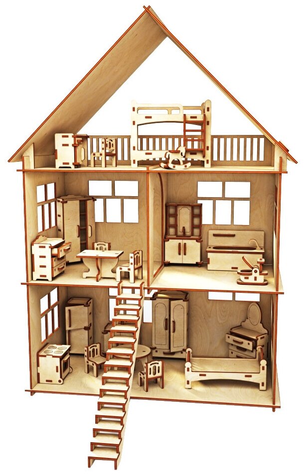 Отзывы на Конструктор-кукольный домик ХэппиДом "Коттедж с мебелью" из дерева