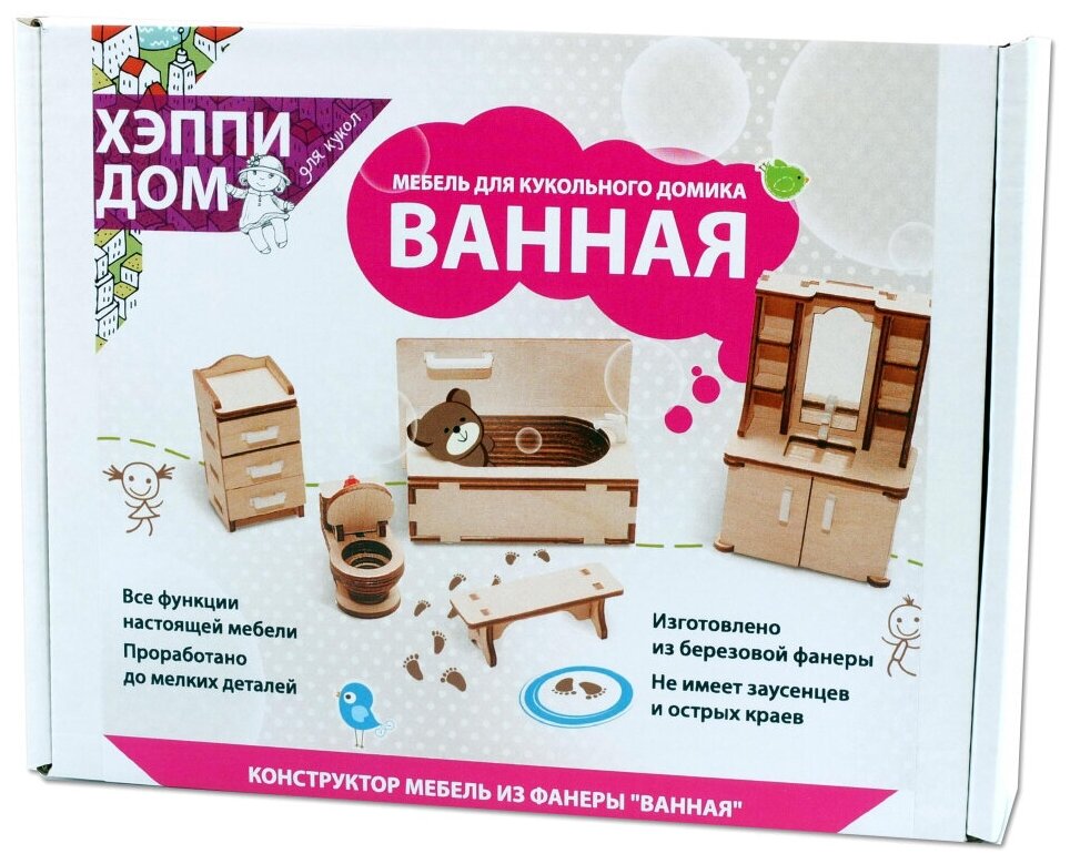 Мебель для кукольного домика ХэппиДом "Ванная" из дерева информация:
