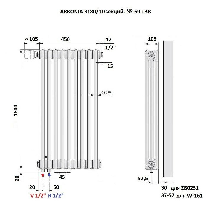 Отзывы на Стальной трубчатый радиатор Arbonia 3180, 10 секций, №69твв, с нижней подводкой, со встроенным термовентилем, цвет Anthrazit Metallic SF-3 AME