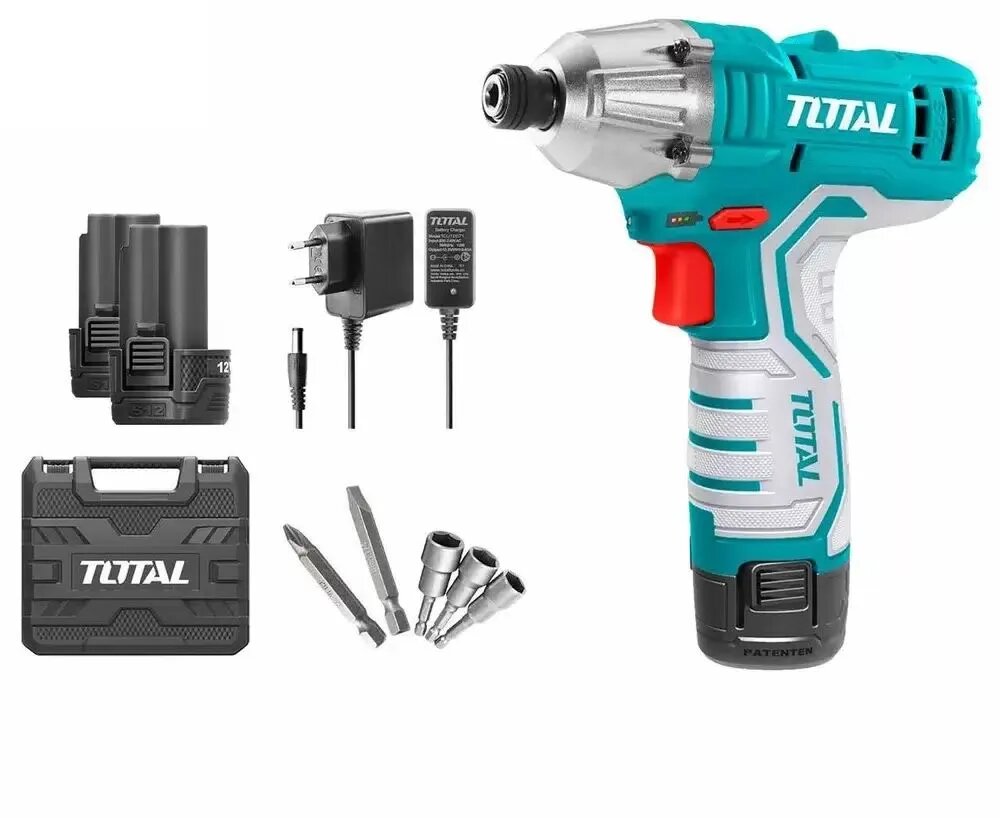 Аккумуляторный ударный винтоверт Li-ion 12V, 1.5Ah (кейс, 2 аккумулятора, набор бит) TOTAL TIRLI1201 информация: