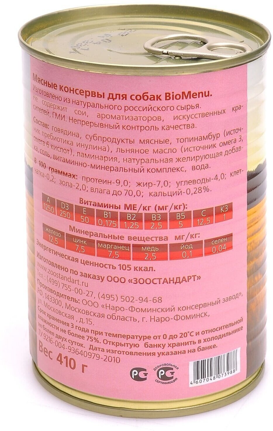 Био Меню 73988 консервы для собак Говядина 410г