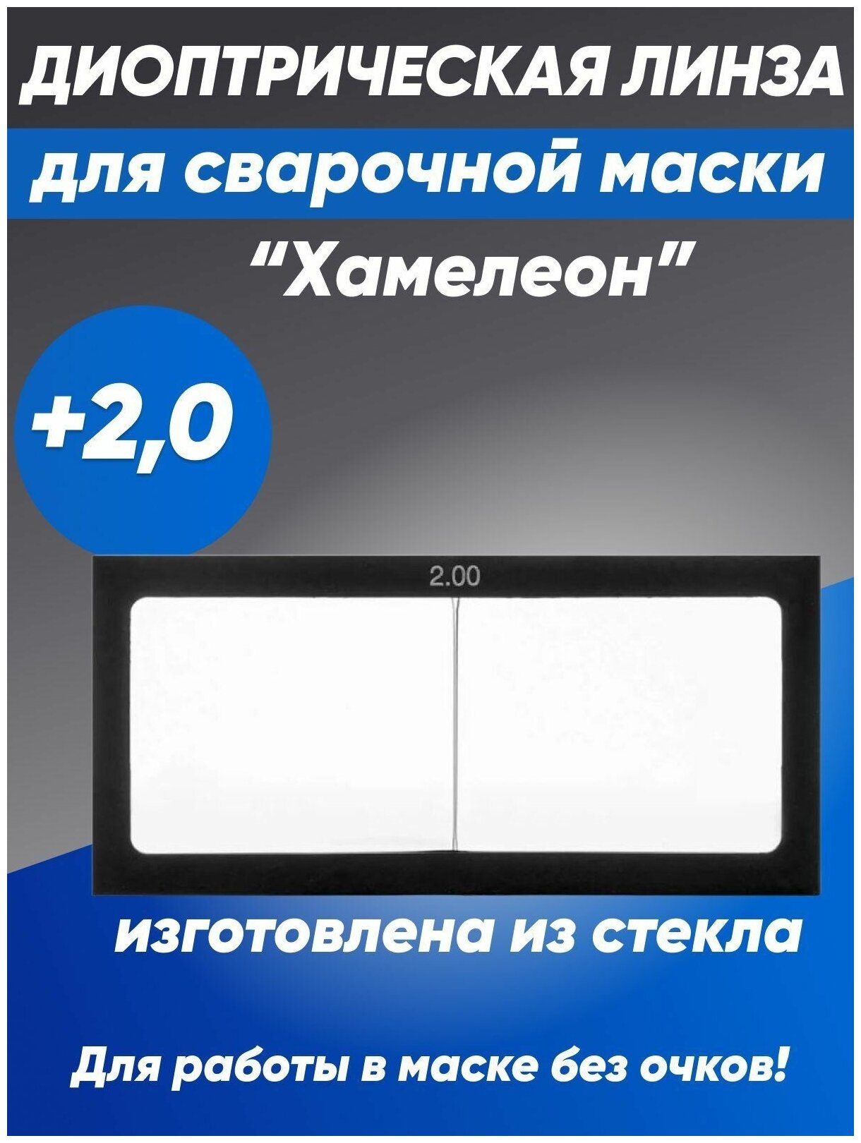 Линза диоптрическая стекло для сварочной маски "Хамелеон", +2 информация: