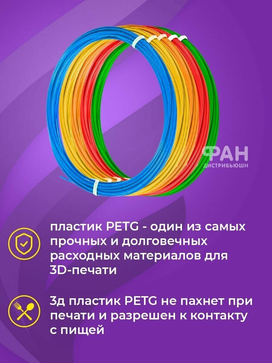 Пластик для 3д ручки PET-G 7 цветов 5 метров Funtasy , стержни , леска пластмасса , безопасный , без запаха , Картриджи 3d