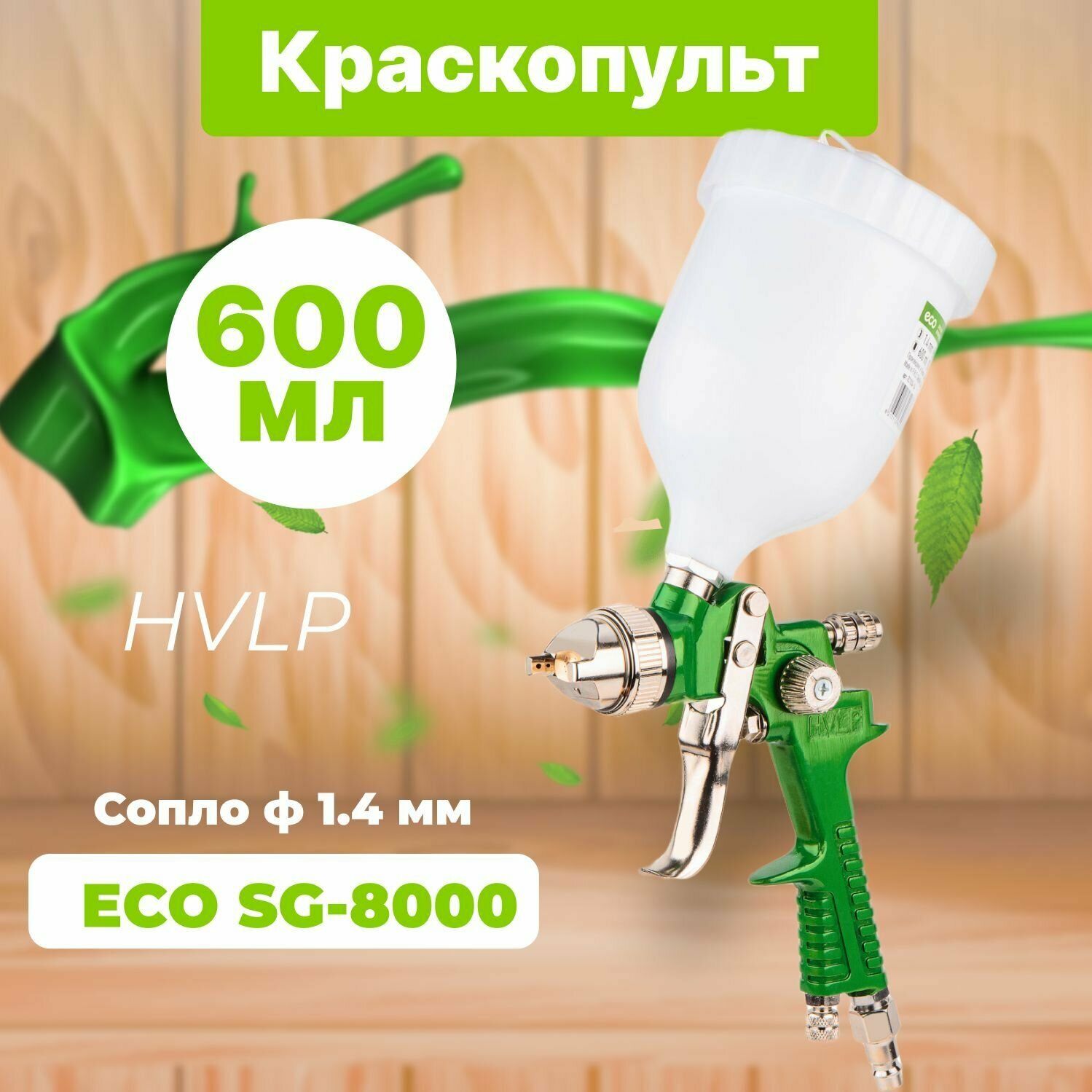 Краскораспылитель ECO SG-8000 (сопло ф 1.4 мм) (HVLP, сопло ф 1.4 мм, верх. бак 600 мл) (EC1534-14)