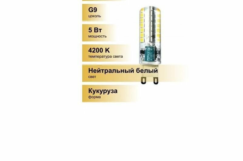 Лампа светодиодная ECOLA G9QV50ELC Corn Micro G9 5,0W 220V 4200K 320 58х16 мм информация: