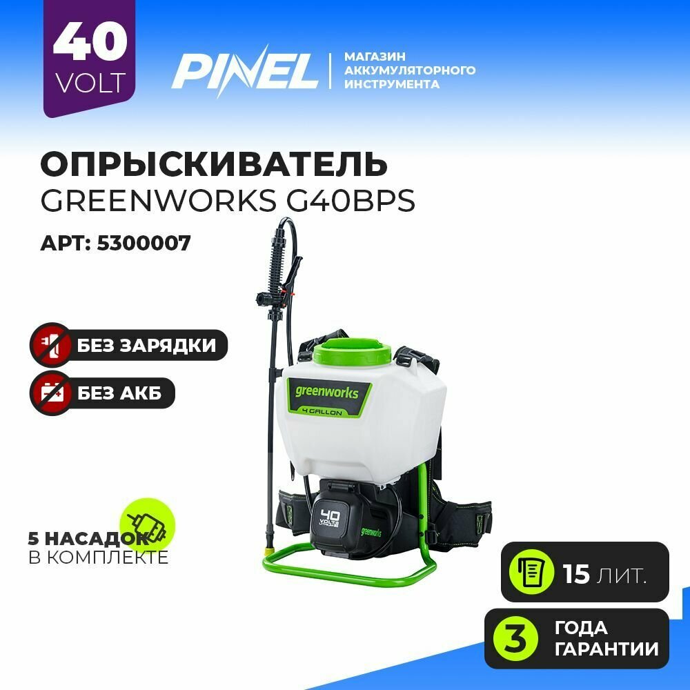 Опрыскиватель аккумуляторный Greenworks G40BPS, 40 В, без АКБ и ЗУ 5300007 информация: