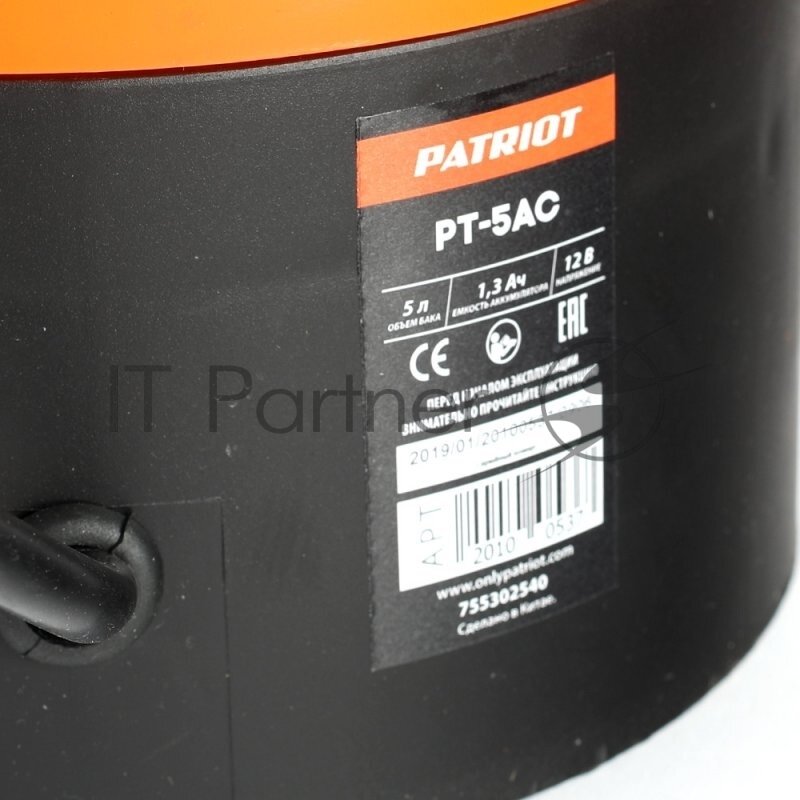 Опрыскиватель Patriot PT-5AC, аккумуляторный, наплечный, 5л, оранжевый/черный [755302540] информация: