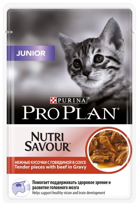 Pro Plan Nutrisavour Junior пауч для котят (кусочки в соусе) Говядина, 85 г. упаковка 26 шт