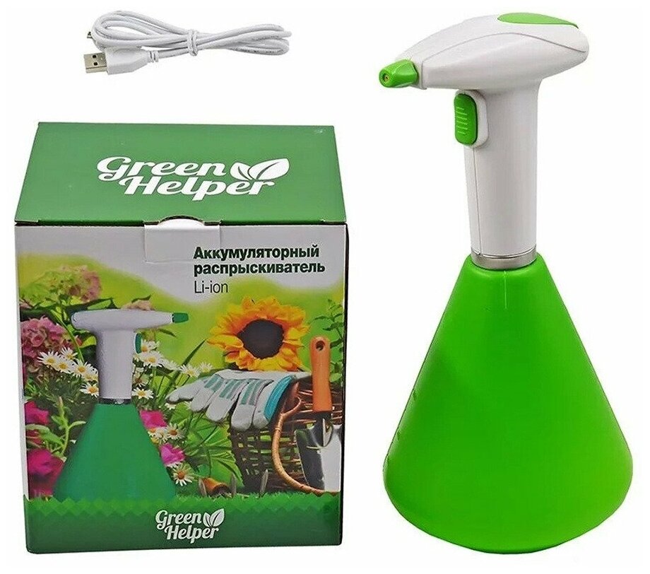 Аккумуляторный садовый опрыскиватель для растений, объём 1,5 литра, с USB зарядкой Green Helper