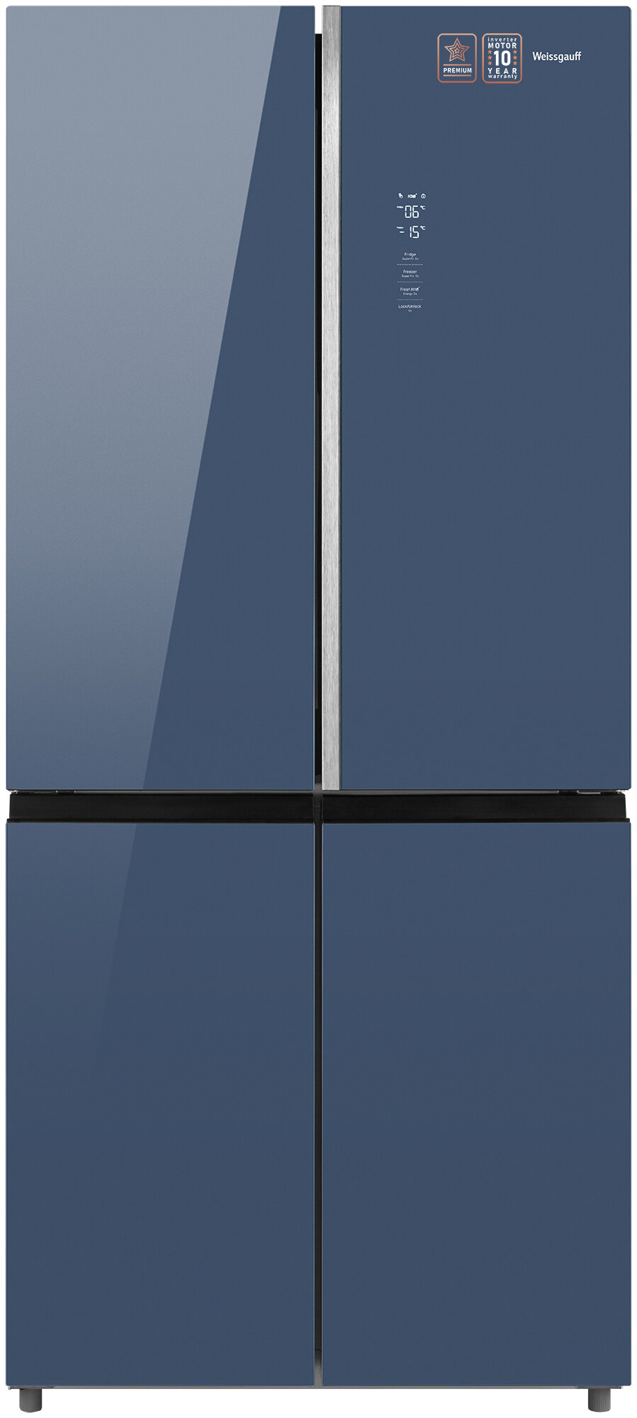 Отдельностоящий холодильник с инвертором Weissgauff WCD 590 Nofrost Inverter Premium Ecofresh Blue Glass 3 года гарантии, CrossDoor, суперзаморозка, суперохлаждение, технология Multi Air Flow и Metal-Tech Cooling, LED-освещение 112 025 ₽