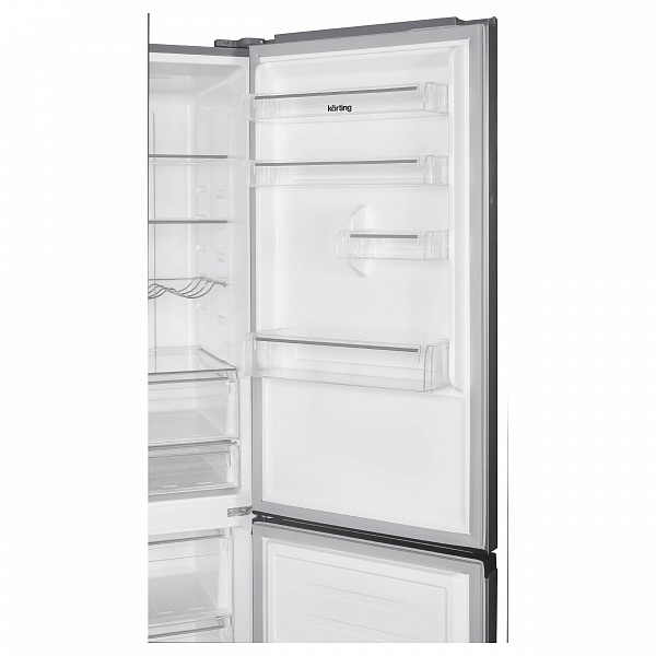 Холодильник Korting KNFC 62980 X, двухкамерный, общий объем 342 л, система охлаждения No Frost, автоматическое размораживания, LED-освещение