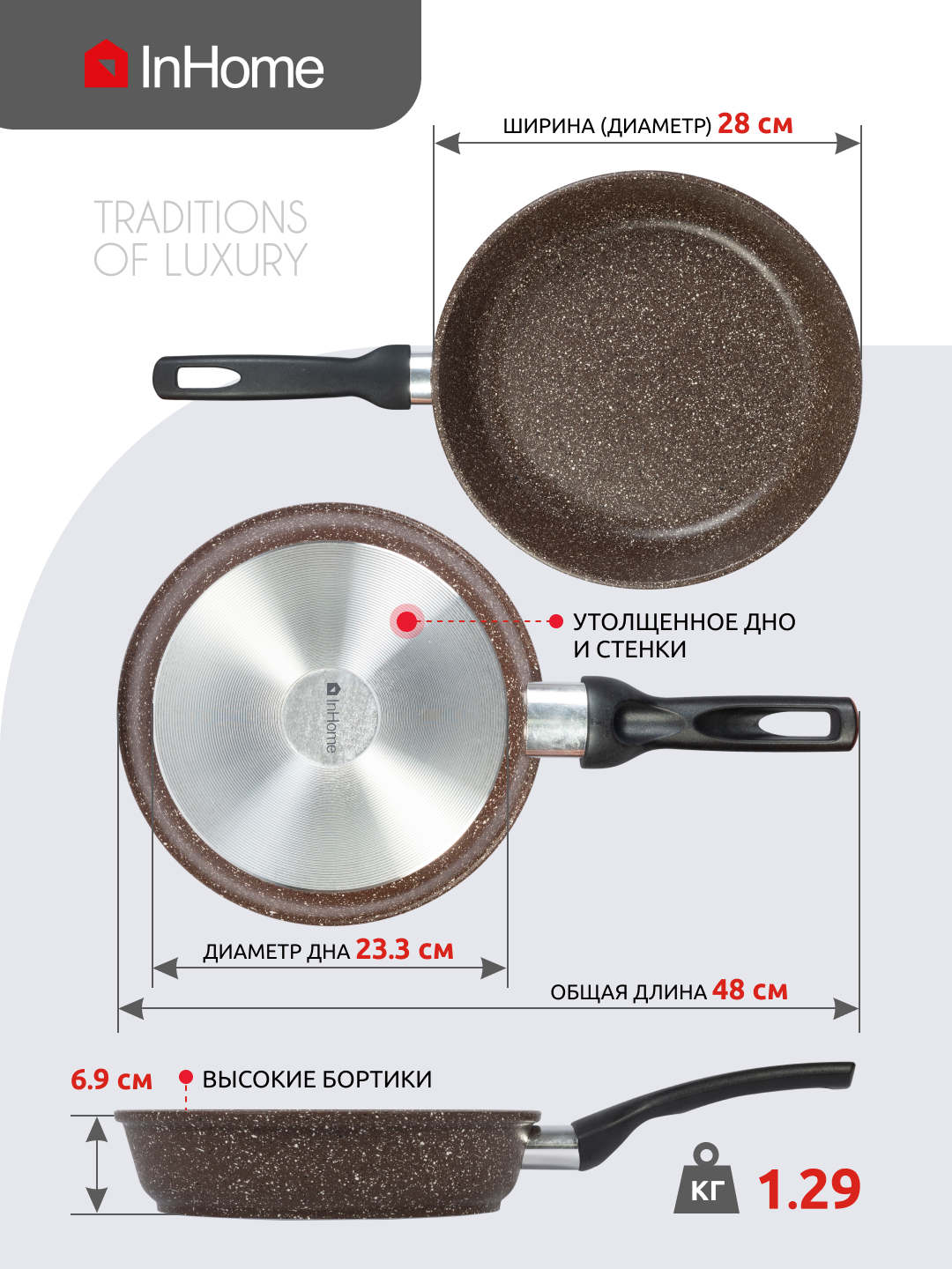 Литая сковорода с антипригарным покрытием InHome, IVFL/128 информация: