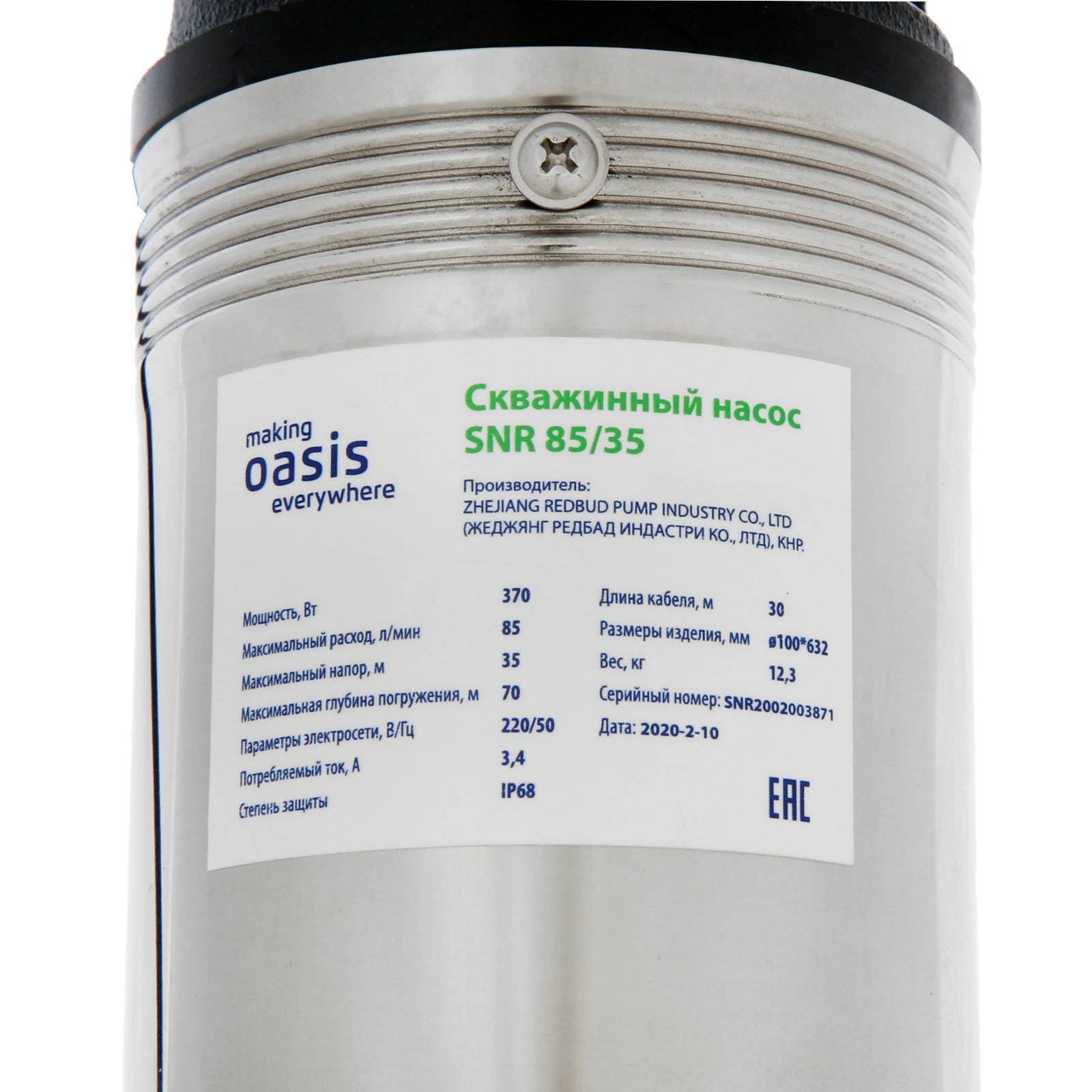 10 цен на Насос скважинный SN 85/35, центробежный, 370 Вт, напор 35 м, 85 л/мин, кабель 30 м