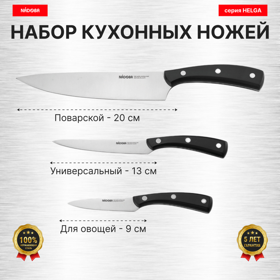 10 цен на Набор из 3 кухонных ножей "Поварская тройка", NADOBA, серия HELGA