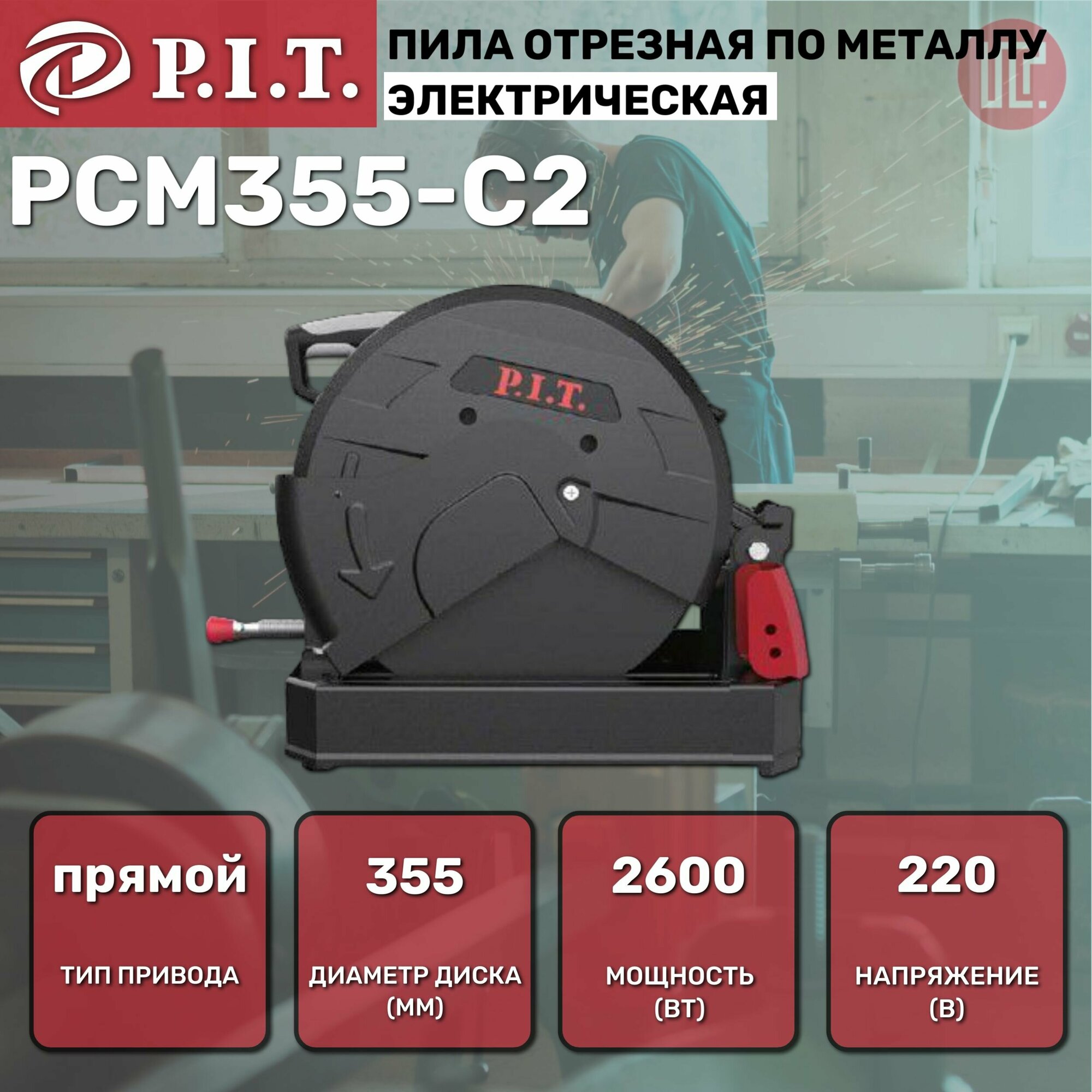 Пила отрезная по металлу P.i.t. PCM355-C2 2600Вт, 355мм, 3800rpm, прямой привод, 220В информация:
