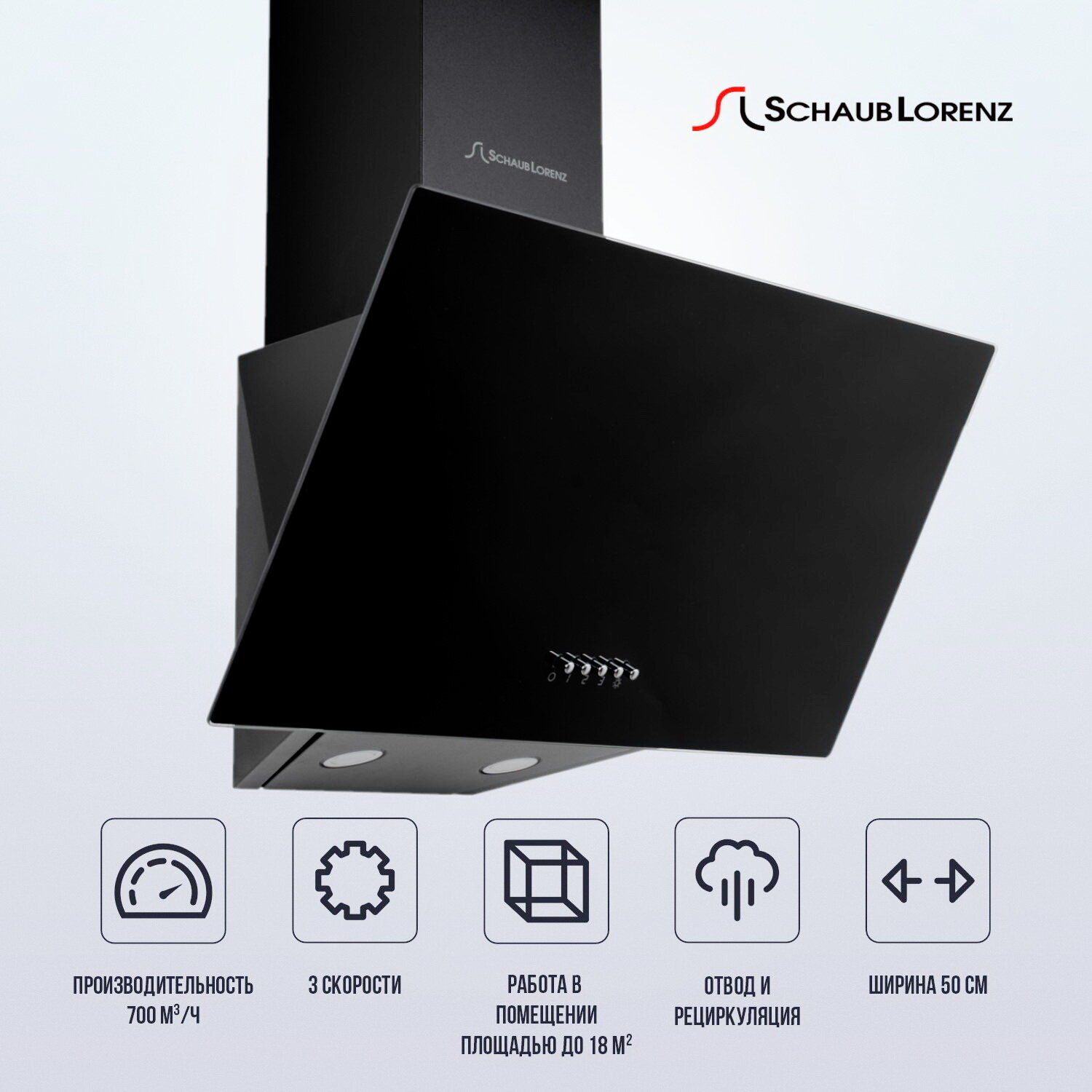 Вытяжка кухонная наклонная Schaub Lorenz SLD DY5410, 50см, 700 м3/ч, компактная, черный информация: