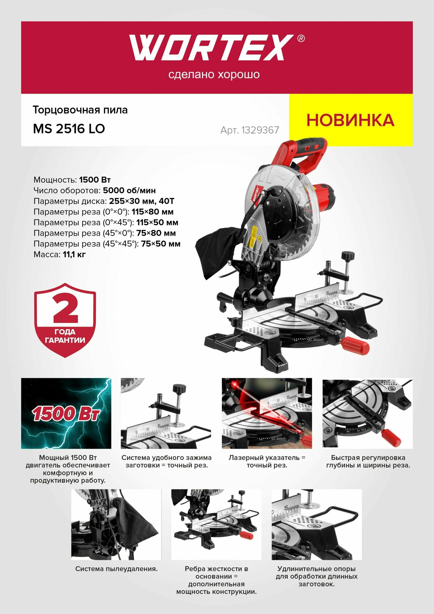 Пила торцовочная WORTEX MS 2516 LO (1329367) информация: