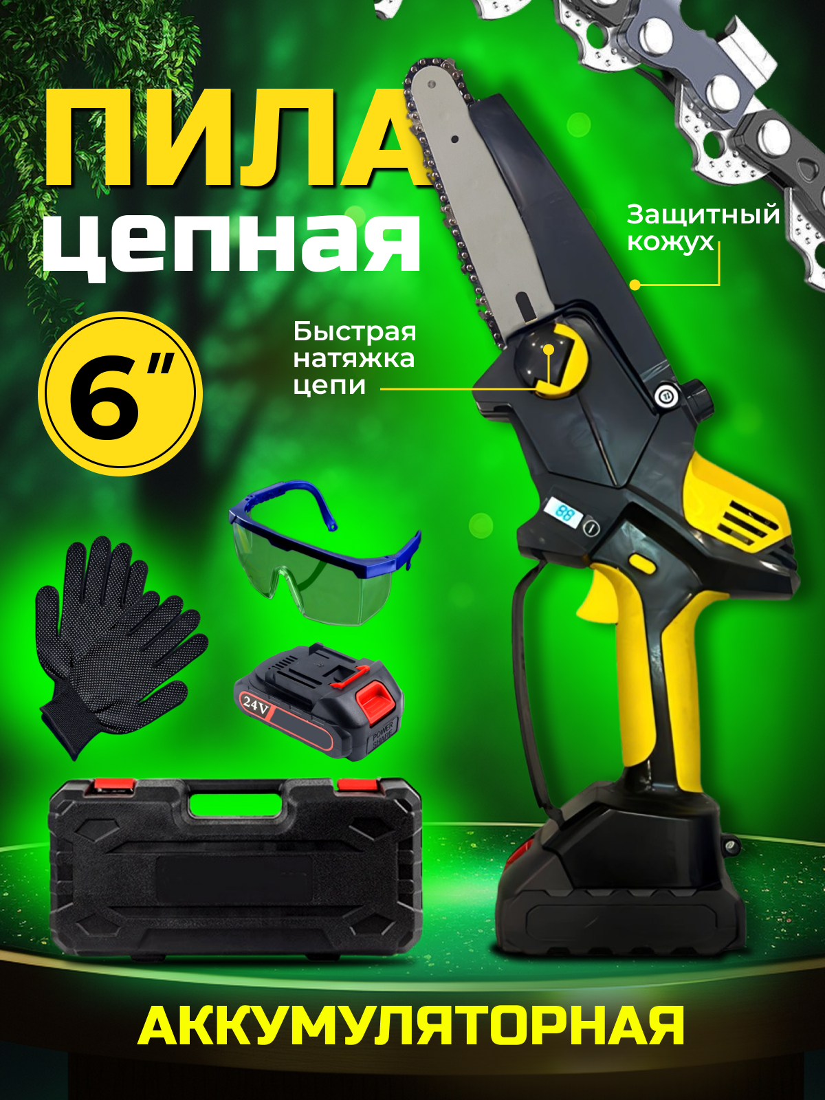 Пила аккумуляторная электрическая ручная цепная, 6 дюймов, черная 6 243 ₽