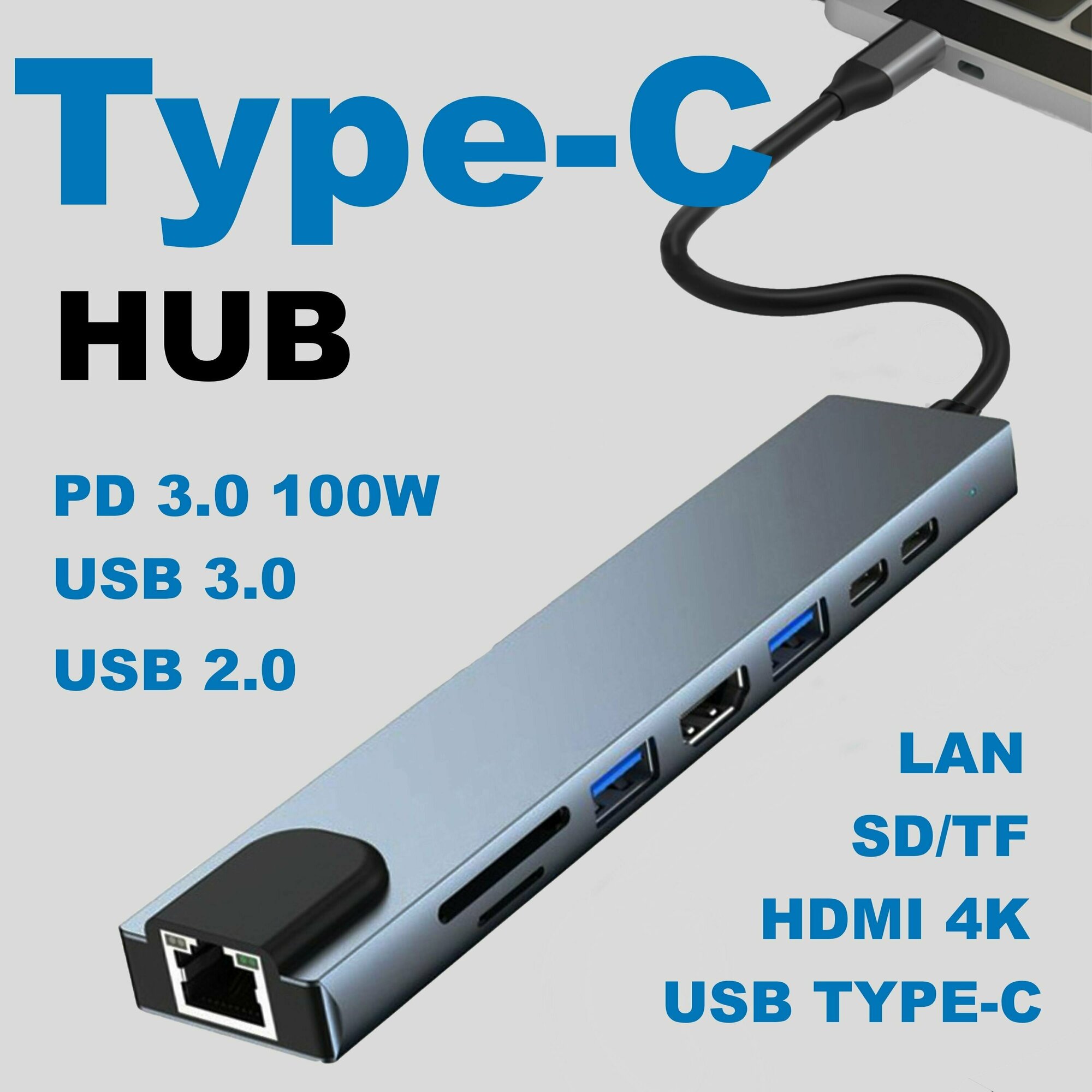 Отзывы на USB hub концентратор. Док-станция USB-C. Card reader для ноутбука, ПК, телефона, macbook, компьютера и телевизора Smart TV. Разветвитель портов Хаб type-c 3.0, ethernet HDTV SD/TF LAN HDMI USBx2
