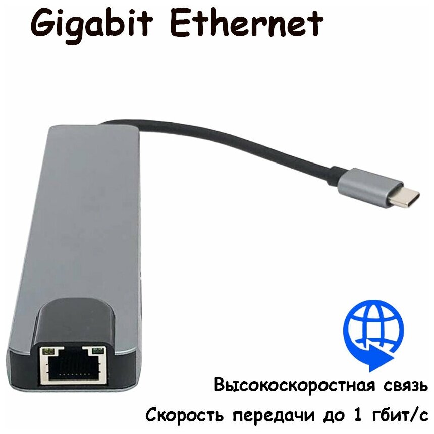 USB hub концентратор. Док-станция USB-C. Card reader для ноутбука, ПК, телефона, macbook, компьютера и телевизора Smart TV. Разветвитель портов Хаб type-c 3.0, ethernet HDTV SD/TF LAN HDMI USBx2 информация: