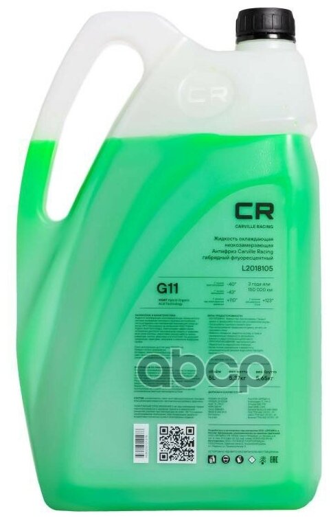 Антифриз G11, Зеленый, Гибридный Флуоресцентный -40°с, 5л/5.37кг Carville Racing арт. L2018105 информация: