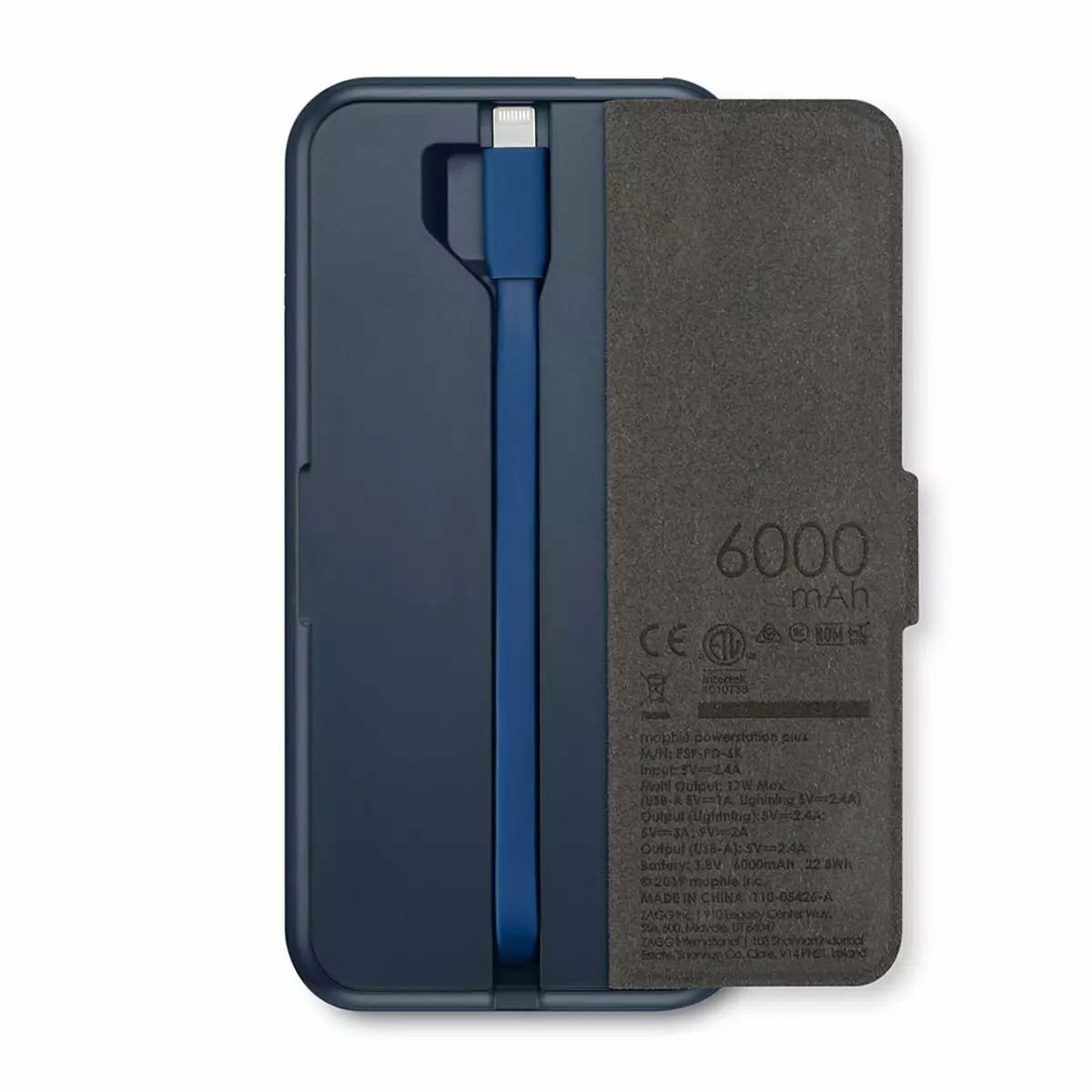 Внешний аккумулятор Mophie Universal Battery Powerstation Plus Wireless PD 8K. Цвет: темно-синий. Емкость аккумулятора 8000 мАч. Встроенный кабель Lightning. Цвет: темно-синий темно-синий