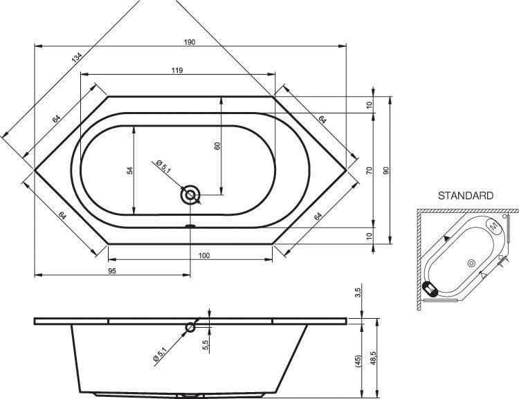 Акриловая ванна RIHO Kansas (190x90) B035001005 без гидромассажа