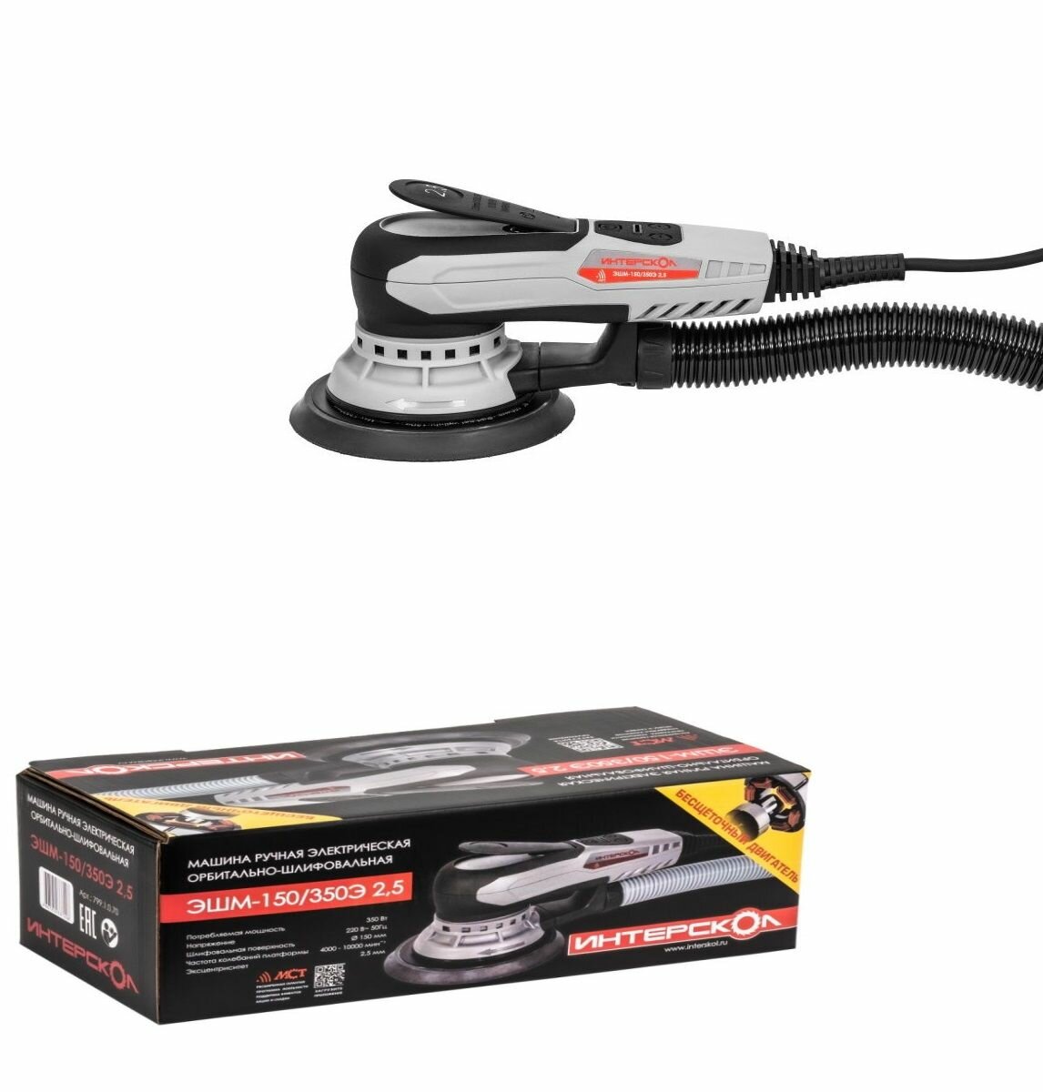 Бесщеточная эксцентриковая шлифмашина ИНТЕРСКОЛ ЭШМ-150/350Э 2,5 799.1.0.70