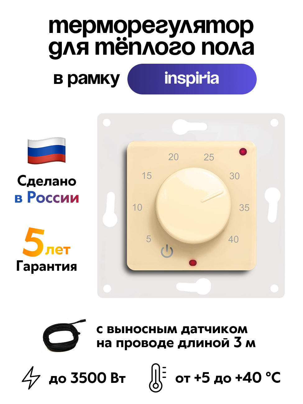 Отзывы на Терморегулятор ЭргоЛайт ТР-03 Инспирия бежевый, с выносным датчиком, встраиваемый, для рамок Legrand Inspiria