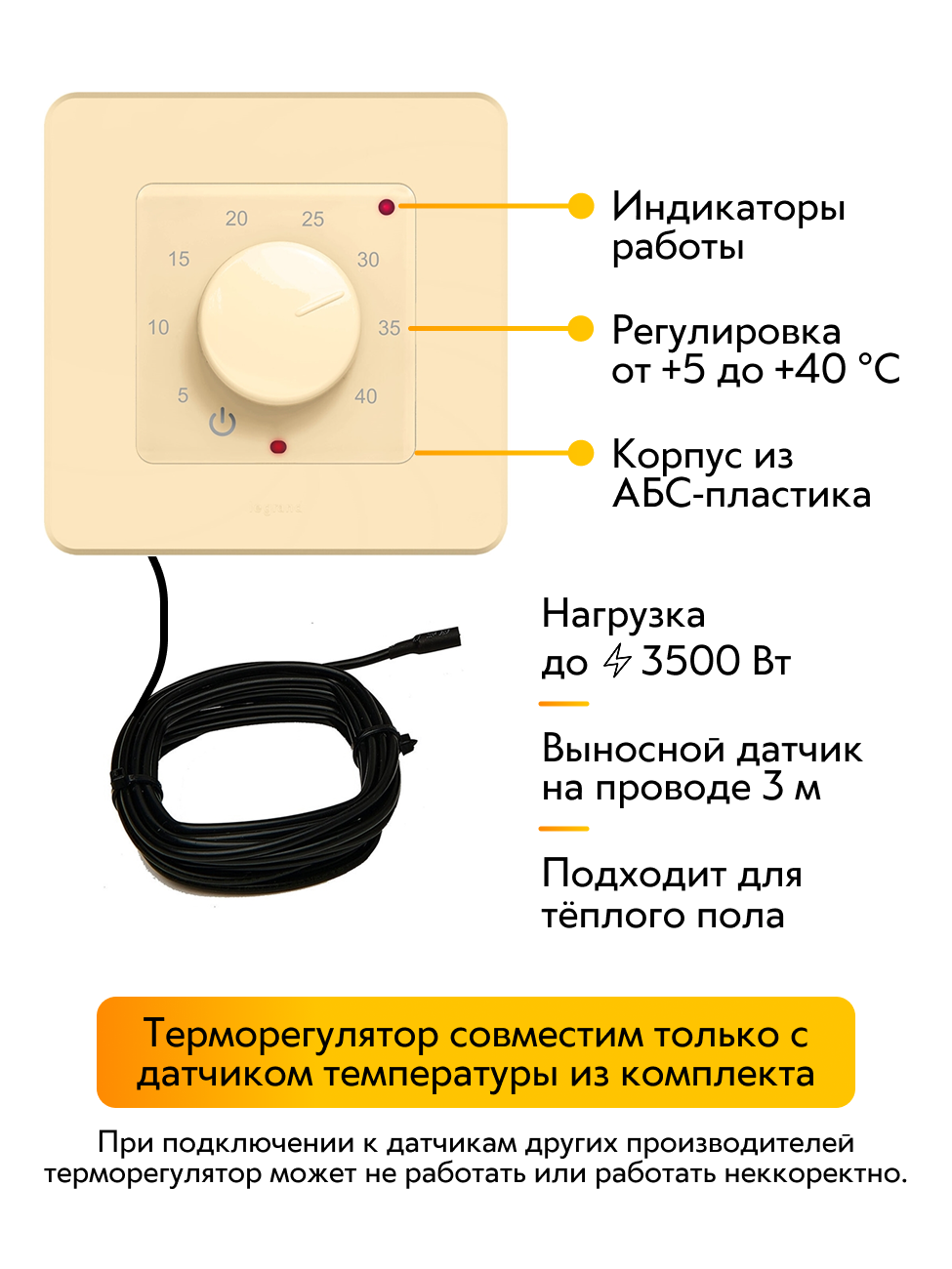 Терморегулятор ЭргоЛайт ТР-03 Инспирия бежевый, с выносным датчиком, встраиваемый, для рамок Legrand Inspiria информация: