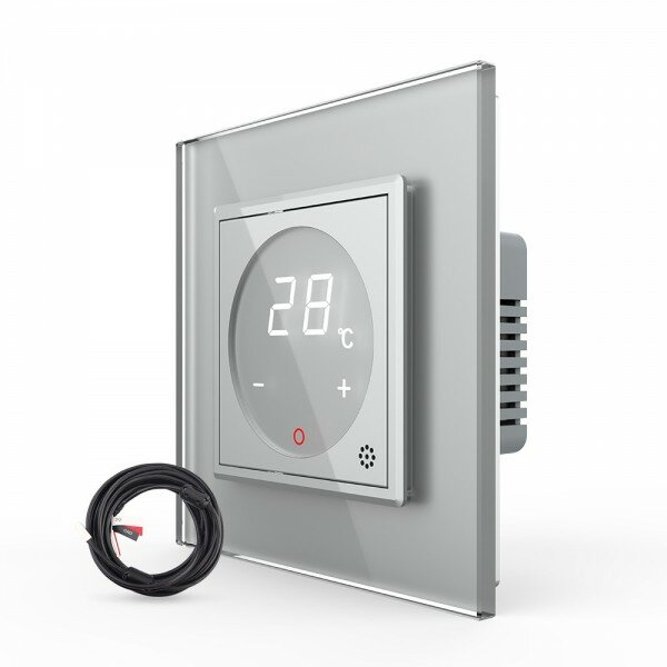 VL-C7FQ1-2IPS72 Терморегулятор пола Livolo 16А, сенсорное управление, датчик воздуха, датчик пола 5 м, Серый информация: