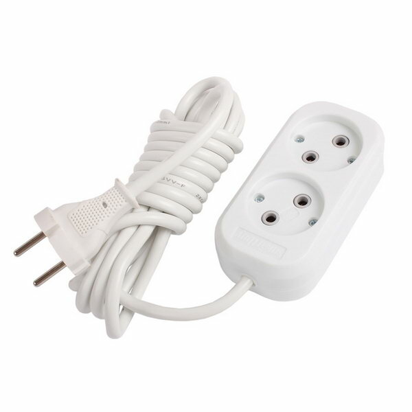 Отзывы на Удлинитель 2 розетки, 3 м, 10 А, 2200 Вт, ПВС 2х1 мм2, без з/к, белый
