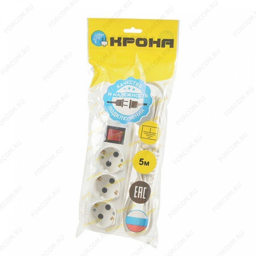 10 цен на Бытовой удлинитель с заземлением и выключателем крона КБ335005-Б РС (У16-001УХЛ4) 5м (ПВС 3х0,75)