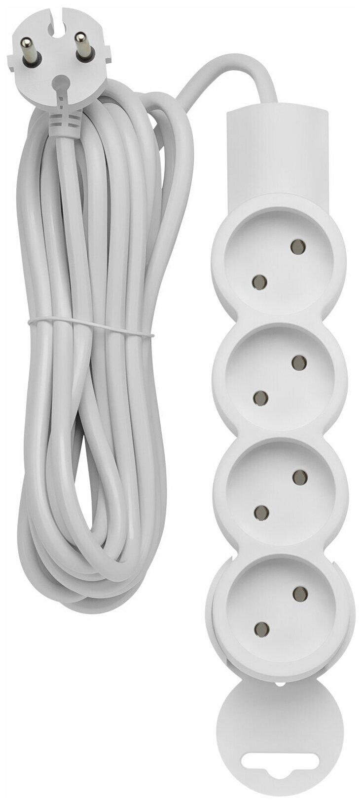 32011 3 Удлинитель бытовой, 4 гнезда, 5м, без заземления, с держателем, 2200Вт, 10А, белый, 32011 3, duwi, цена за 1 шт.