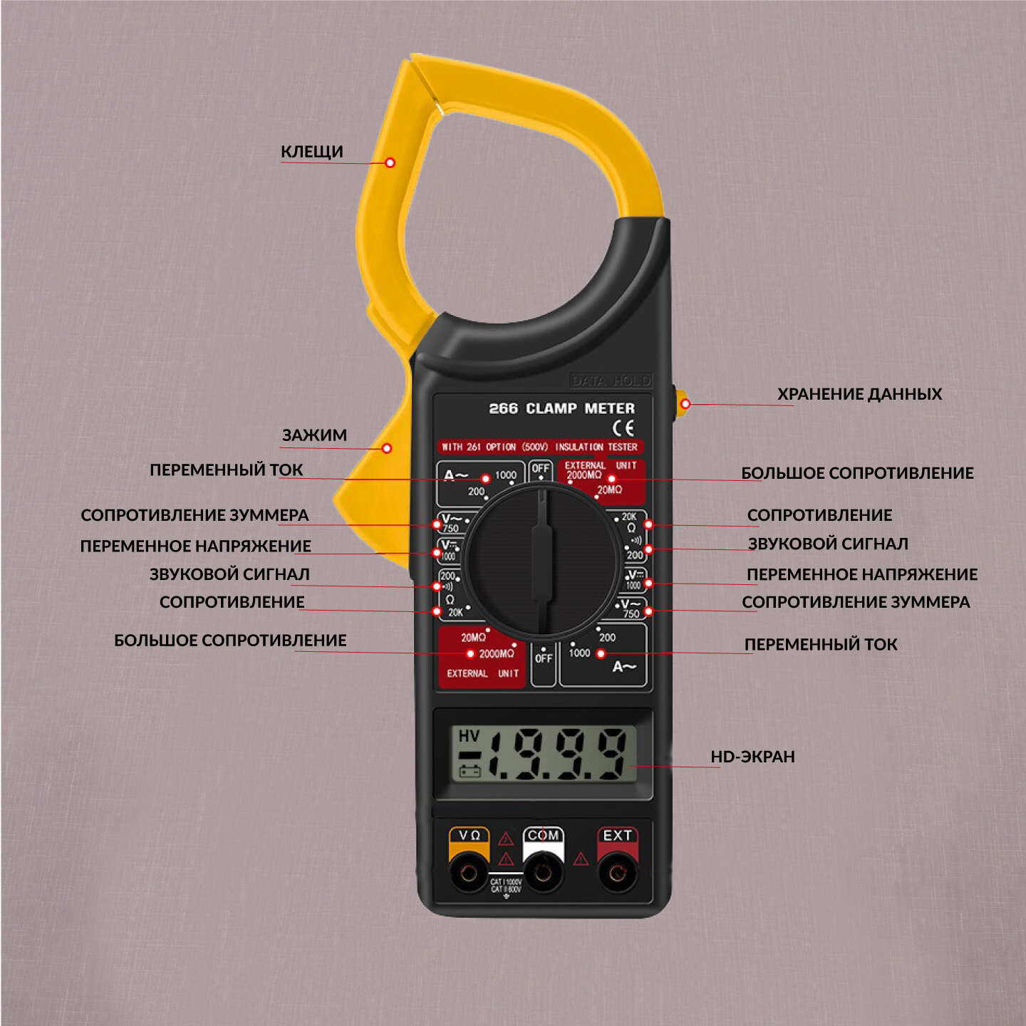 Мультиметр 1000В SKATA, клещи токоизмерительные информация: